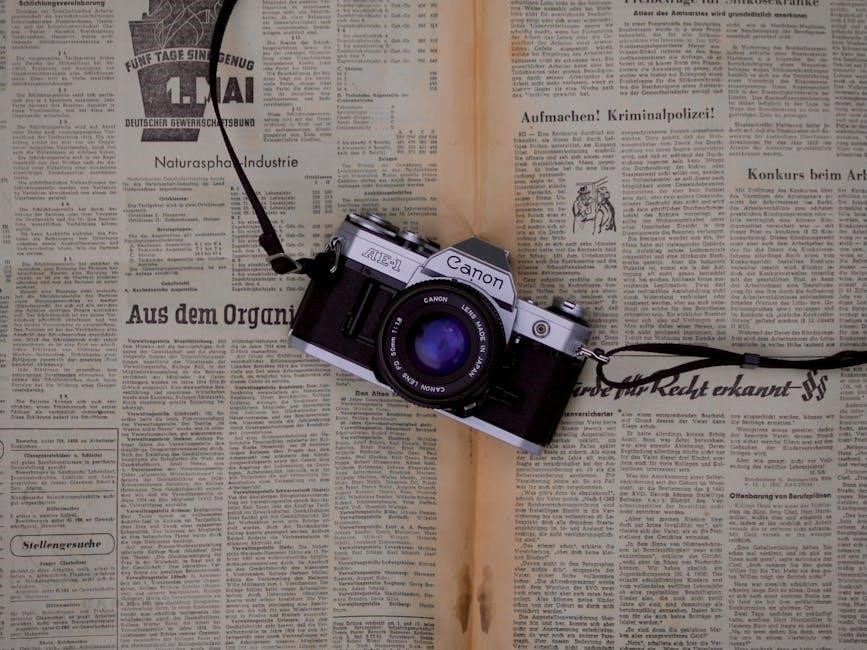 Split-image and fine-focus aids within the viewfinder assist in precise adjustments. The instruction manual, found on platforms like the Internet Archive, details these methods, ensuring optimal image sharpness for photographers of all levels.