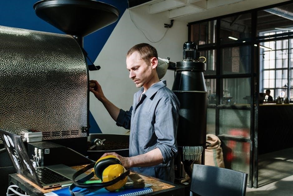 In case of an emergency, immediately turn off the engine and disconnect the power source. Evacuate the area if there’s a fire or gas leak. Use a fire extinguisher if necessary. For equipment malfunction, contact a professional. Always prioritize personal safety and avoid attempting repairs while the machine is operational. Keep emergency contact numbers handy and ensure others nearby are aware of the situation.